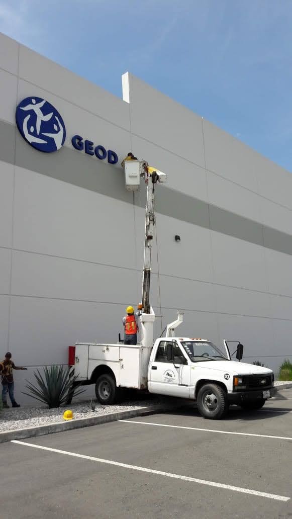 Contamos con grúas de canastilla de 10 hasta 24 metros y el personal capacitado para la Instalación y Mantenimiento de Anuncios Luminosos.
